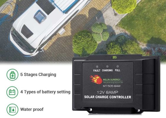 8A 12V छोटा आकार IP65 जलरोधी स्मार्ट पीडब्ल्यूएम सौर चार्ज नियंत्रक